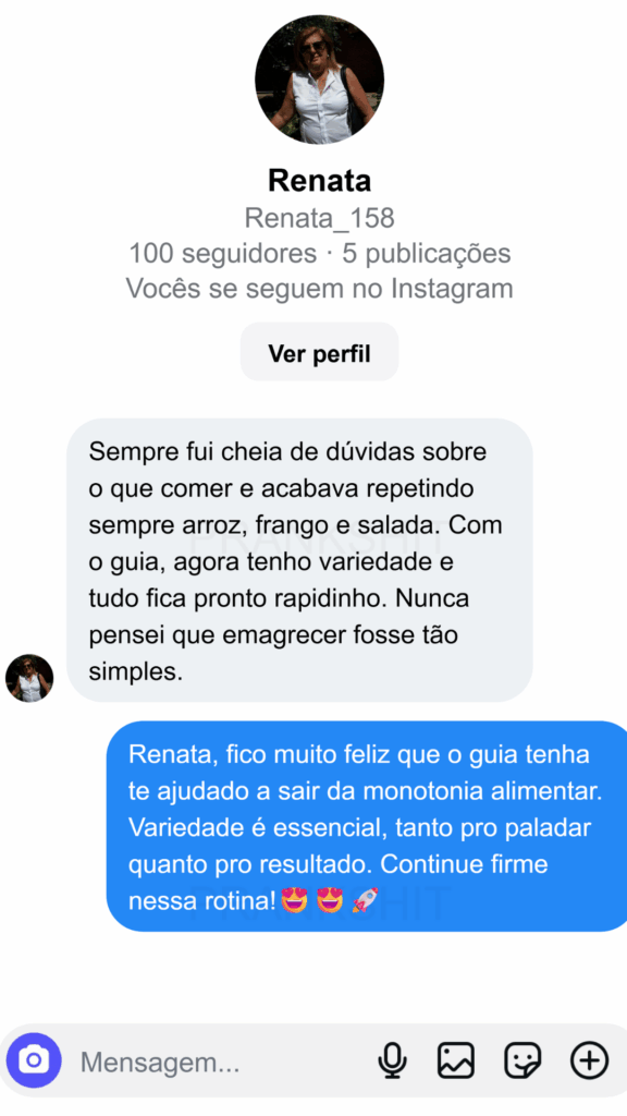 Você vai conseguir montar marmitas equilibradas, gostosas e variadas usando o que tem na sua cozinha. Os resultados começam a aparecer em poucos dias, e em até 7 dias você já sente a diferença no corpo, no bolso e na disposição.