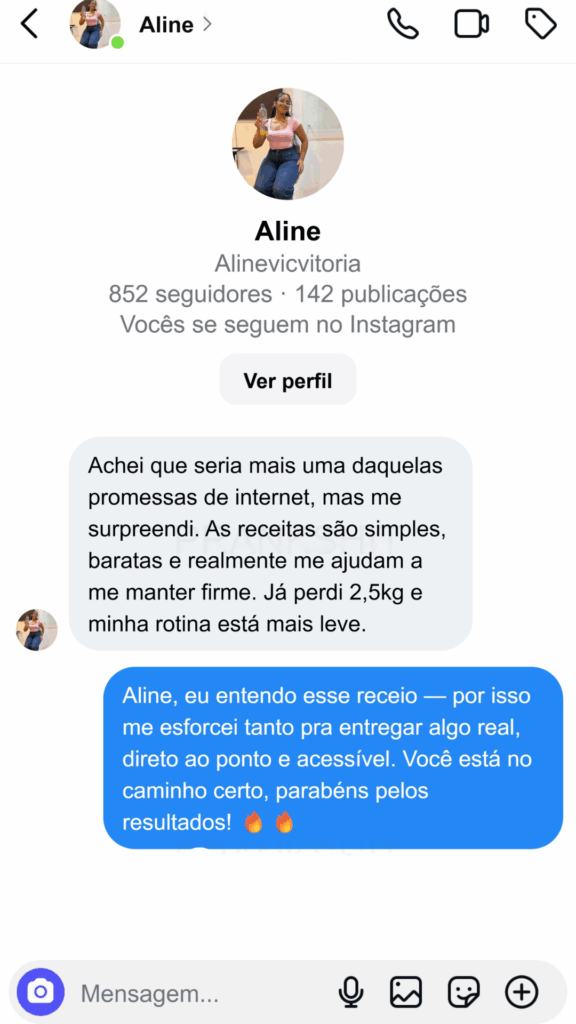 Você não vai mais depender de fórmulas mirabolantes nem gastar horas na cozinha. Com um plano simples, você ganha saúde, leveza e liberdade alimentar.